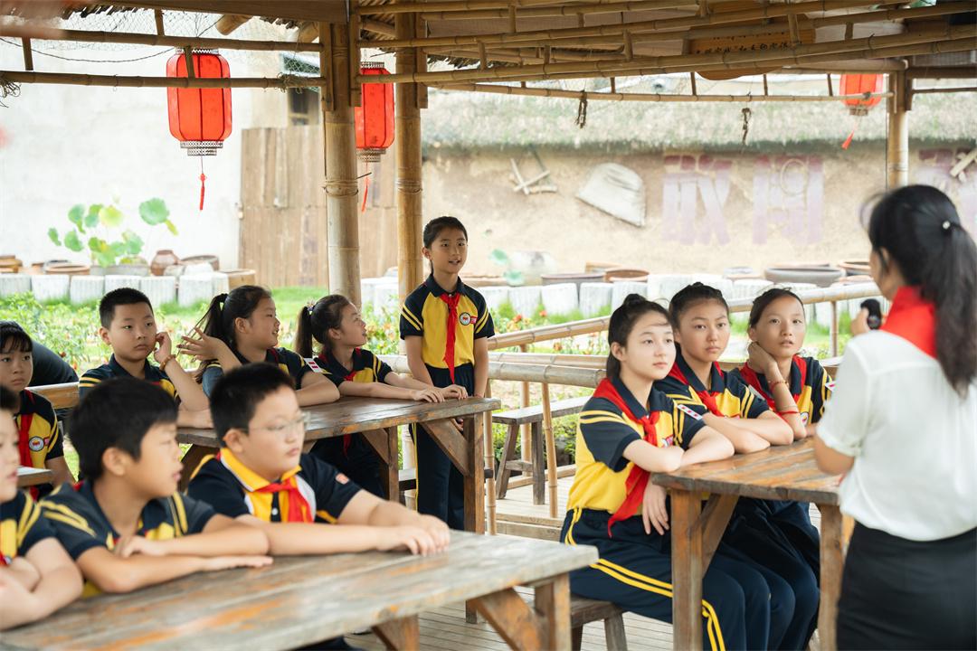 国旗传递及升旗仪式结束后,少先队员代表们在辅导员老师带领下来到“当年农家”——18枚红手印诞生的地方,共同开展交流分享,探寻红色历史,赓续“大包干”精神,熔铸爱国之心,砥砺报国之志。