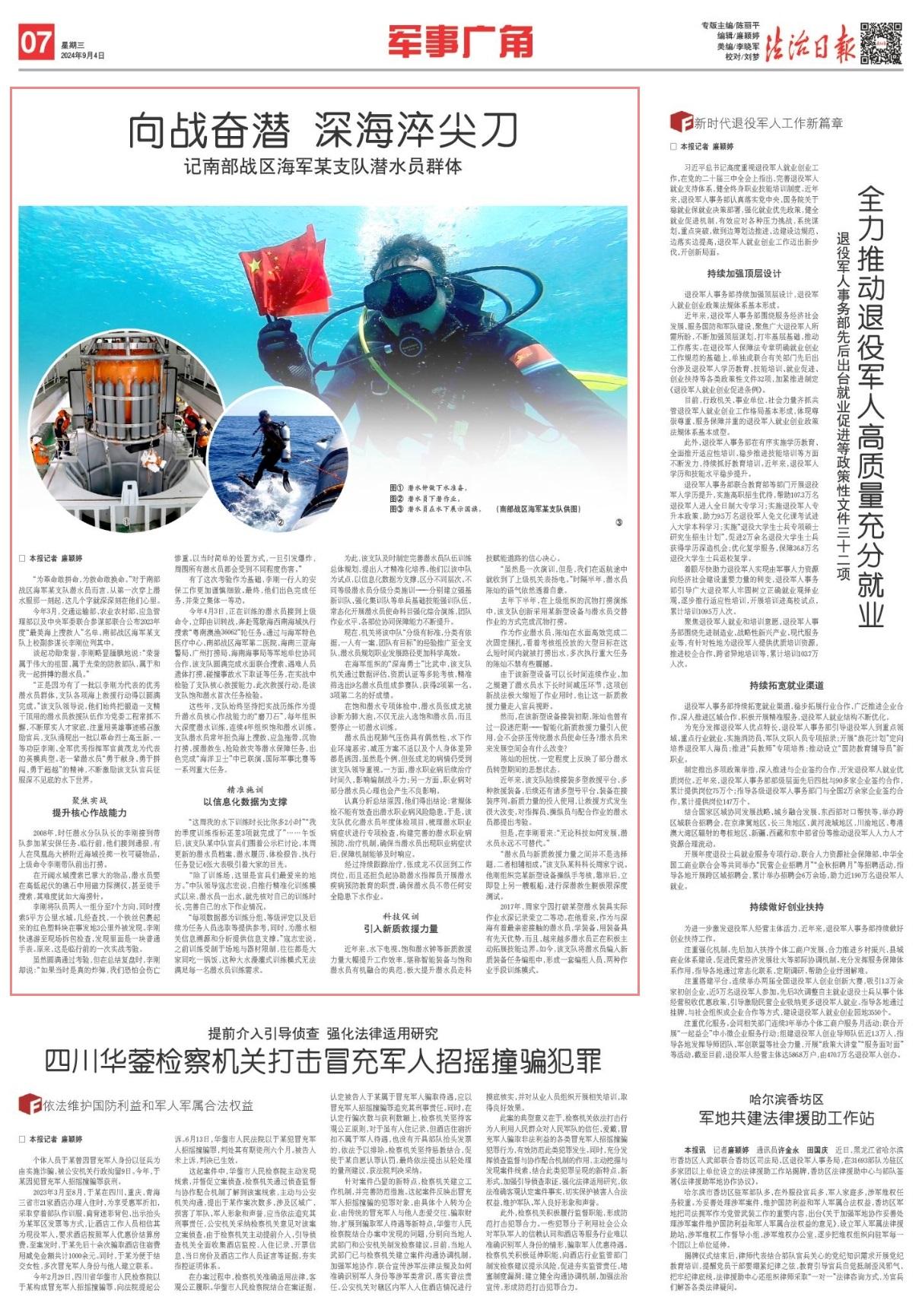 2017年,周家宁因打破某型潜水装具实际作业水深记录荣立二等功。在他看来,作为与深海有着最亲密接触的潜水员,学装备、用装备具有先天优势,而且,越来越多潜水员正在积极主动拓展技能边界。如今,该支队将潜水员编入新质装备任务编组中,形成一套编组人员、两种作业手段训练模式。