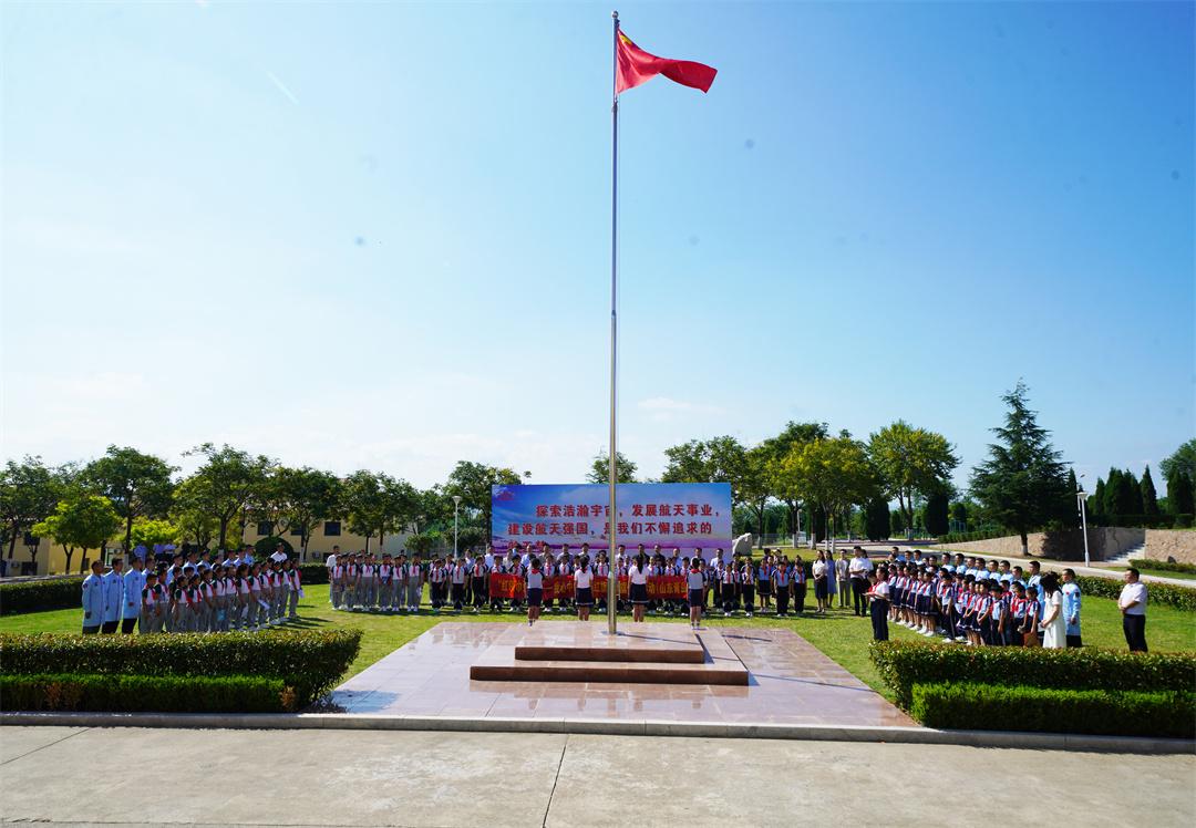 少先队员代表在国旗下献词,坚定自信的眼神、热烈饱满的情绪、铿锵有力的声音,表达出新时代少先队员对祖国的热爱、对航天的向往,抒发着立志报效祖国的豪情。