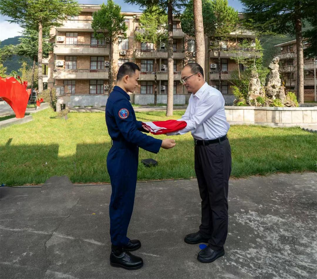 活动特邀曾在中国空间站驻留六个月的神舟十七号航天员——中国人民解放军航天员大队“英雄航天员”唐胜杰莅临。本次活动中传递的这面国旗,经神舟十七号航天员乘组与神舟十八号乘组在太空传递,并由唐胜杰等三名航天员带回地面的国旗。