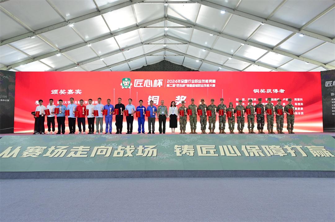 据介绍,此次大赛每个赛项分设军人组和职工组,每个组取前5名分别颁发金奖(1名)、银奖(2名)、铜奖(2名),共计60名选手获奖。