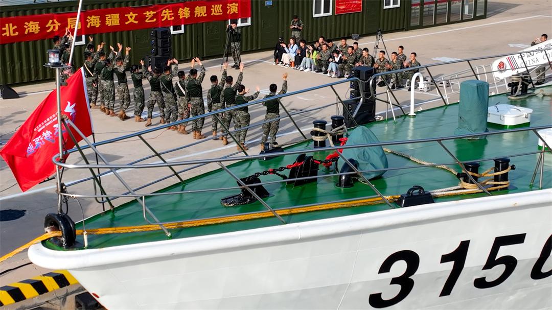 近日,中国海警局北海分局海疆文艺先锋舰扬帆起航。23名“逐梦深蓝”轻骑队员下基层、进码头、上海岛,航程3000余公里、历时19个晨昏、辗转10个单位,为驻地海警执法员和辖区渔民群众送去文化大餐和普法盛宴。