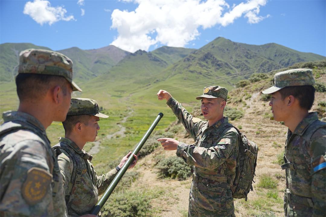 图为陈杨(右二)带领分队进行战场勘察。方圣文 摄