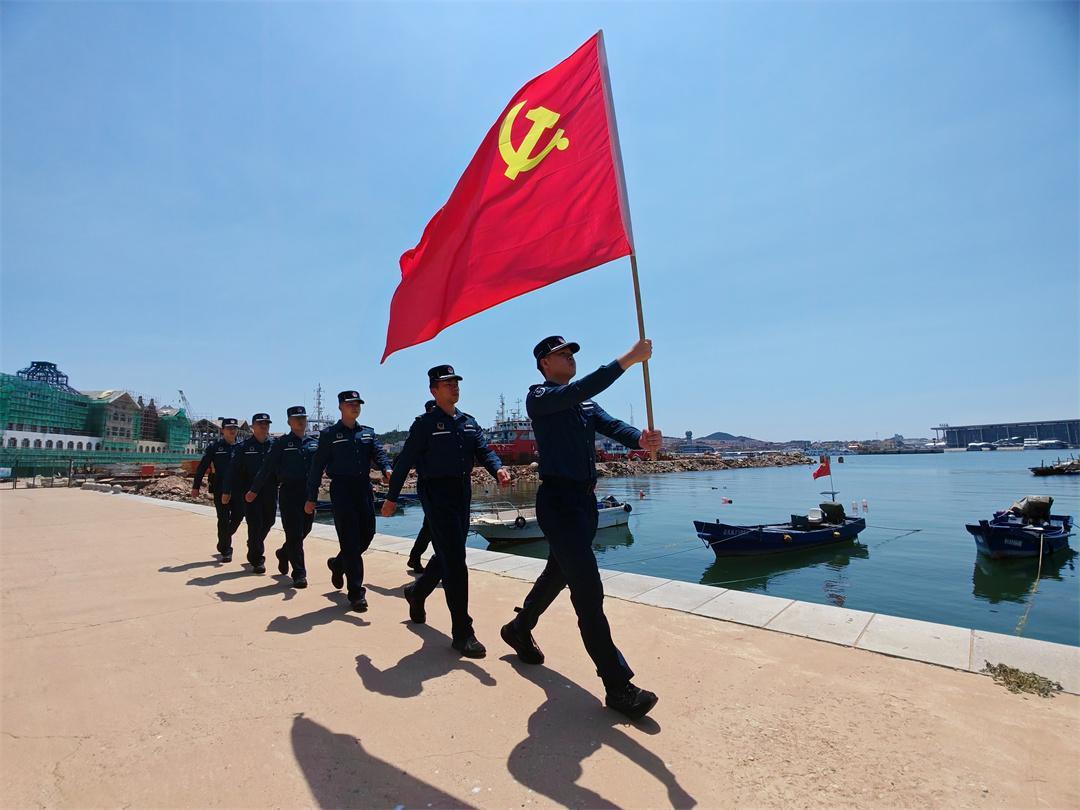 图为山东烟台海警局长岛工作站组织执法员重温入党誓词。卢煜萱 摄