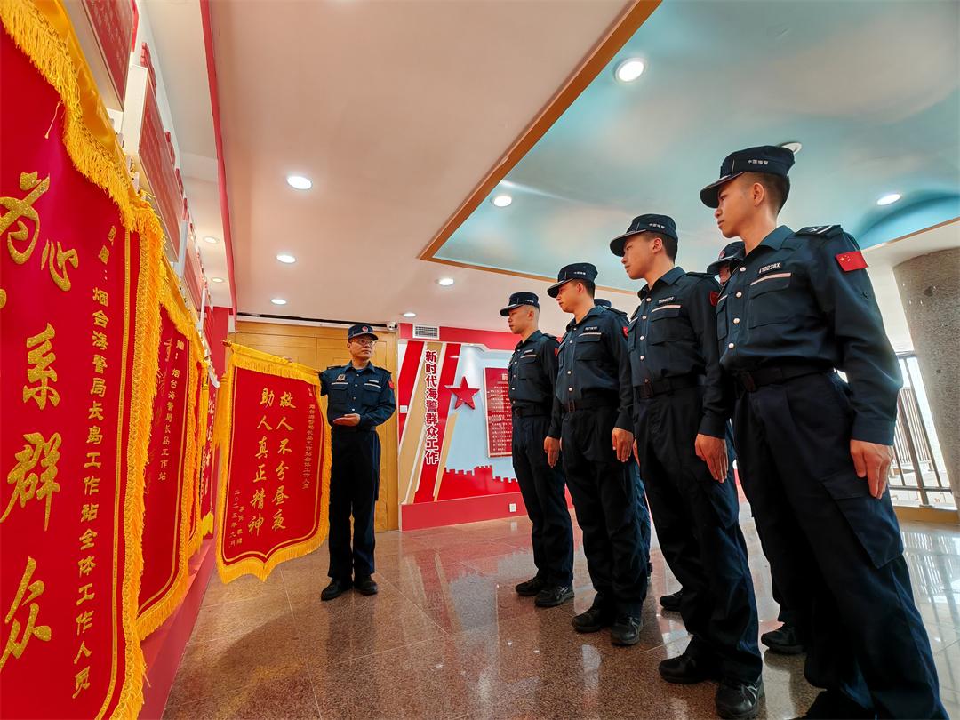 图为山东烟台海警局长岛工作站组织执法员开展仪式教育。卢煜萱 摄