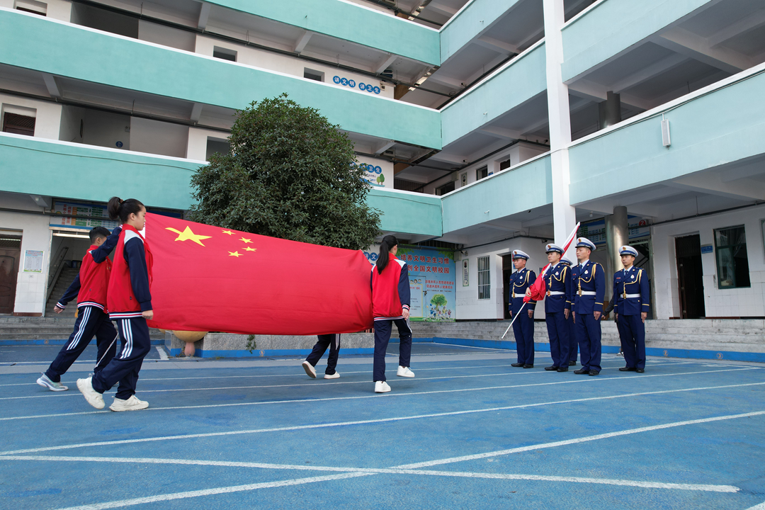 活动现场,由徐明峡护送的这面承载特殊历史意义的五星红旗,被依次传递到优秀共青团员代表和少先队员代表手中,最后交由丹江口市消防救援大队指战员进行升旗。