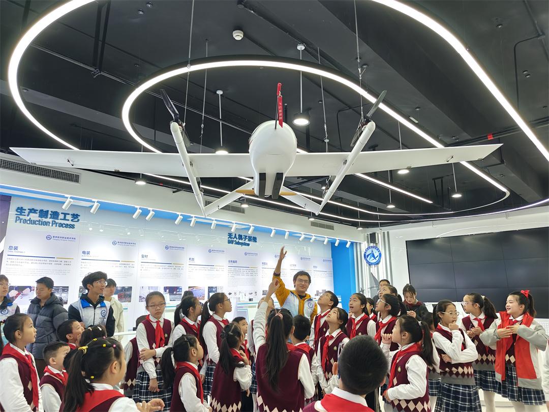 会前,在航天科技集团七院重庆航天职业技术学院青年志愿者带领下,少先队员们先后参观了学校航天文化展示中心,无人机、航空维修实训基地、卫星通信与导航实训基地等,通过老师和志愿者们生动有趣地讲解,让青少年们更加深入地了解航天知识,激发他们对航天科学的浓厚兴趣与探索欲望。