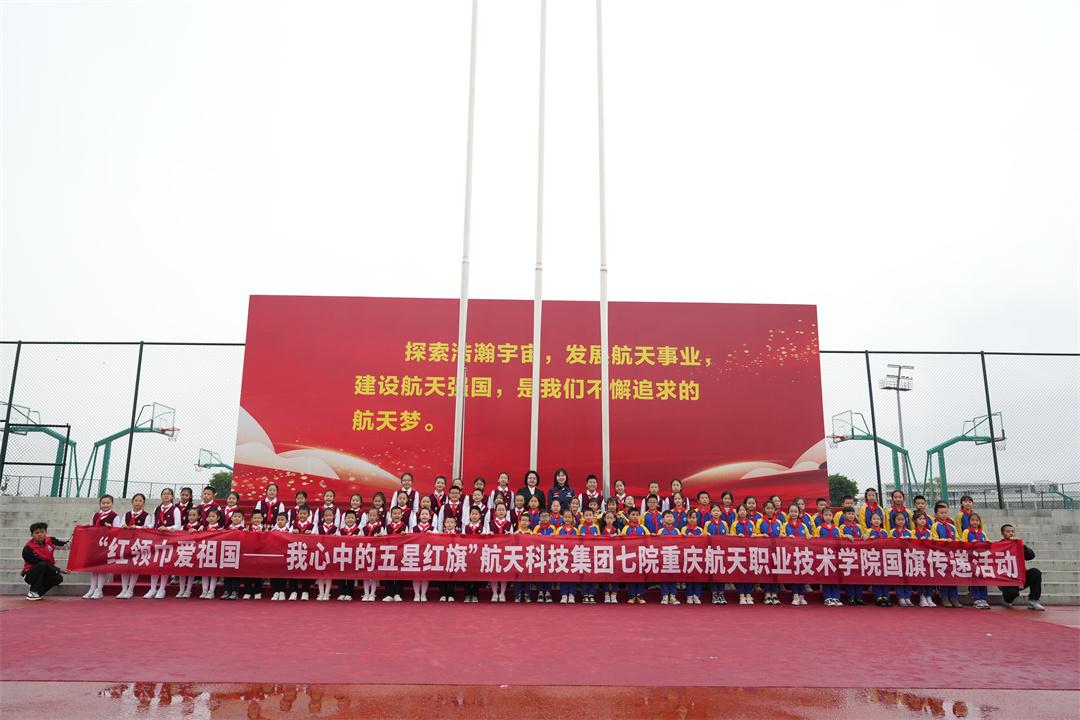 11月9日,“红领巾爱祖国——我心中的五星红旗”国旗传递活动在中国航天科技集团七院重庆航天职业技术学院举行。共青团重庆市委员会、共青团渝北区委员会、航天科技集团七院等相关同志以及航天青年代表、重庆市渝北区和合家园小学及天堡寨小学少先队员、重庆航天职业技术学院师生代表等参加了活动,共同见证这面遨游太空、满载祖国荣誉的五星红旗在巴渝大地高高飘扬。