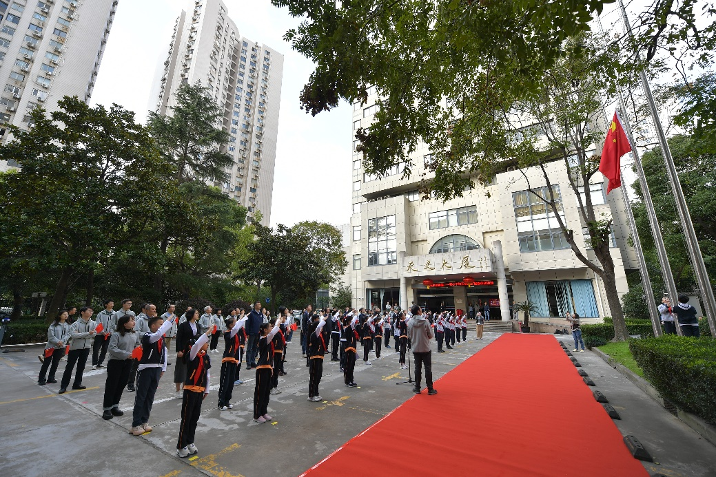 上海天文台台长沈志强在国旗下致辞。沈志强指出,上海天文台始终聚焦世界天文学前沿问题和国家重大战略需求,目前已在“探月”“探火”“北斗”以及空间站等国家重大工程中发挥重要作用,以实际行动践行作为国家战略科技力量的使命担当。沈志强希望通过此次活动激发广大青少年对科学尤其是天文学的兴趣,树立科学梦想和“科技报国”的科研志向,期待更多青少年立志投身于我国天文与航天事业,接过科技创新的接力棒。
