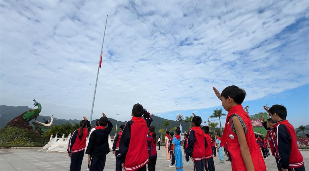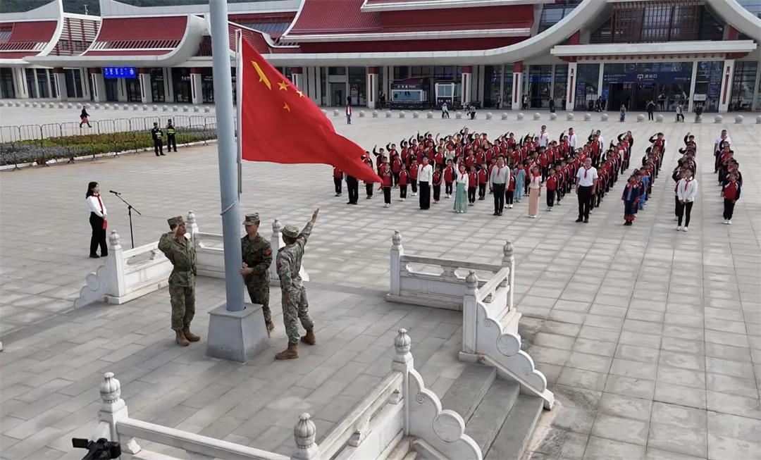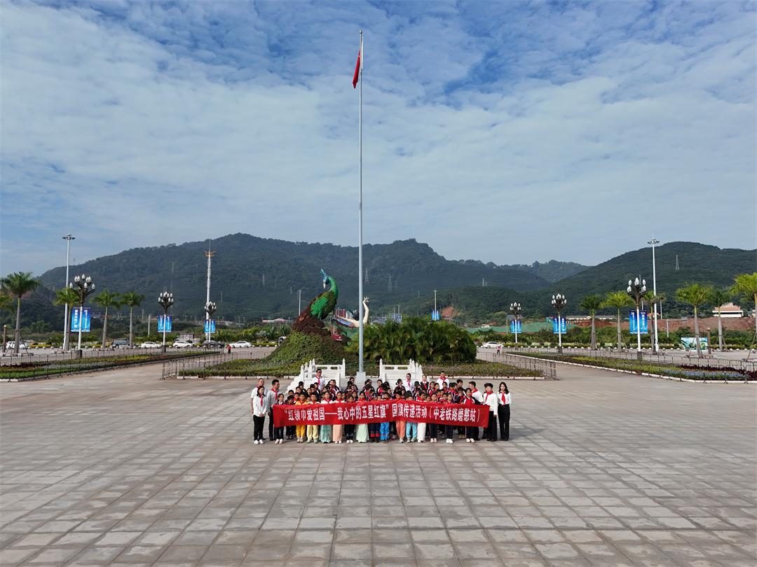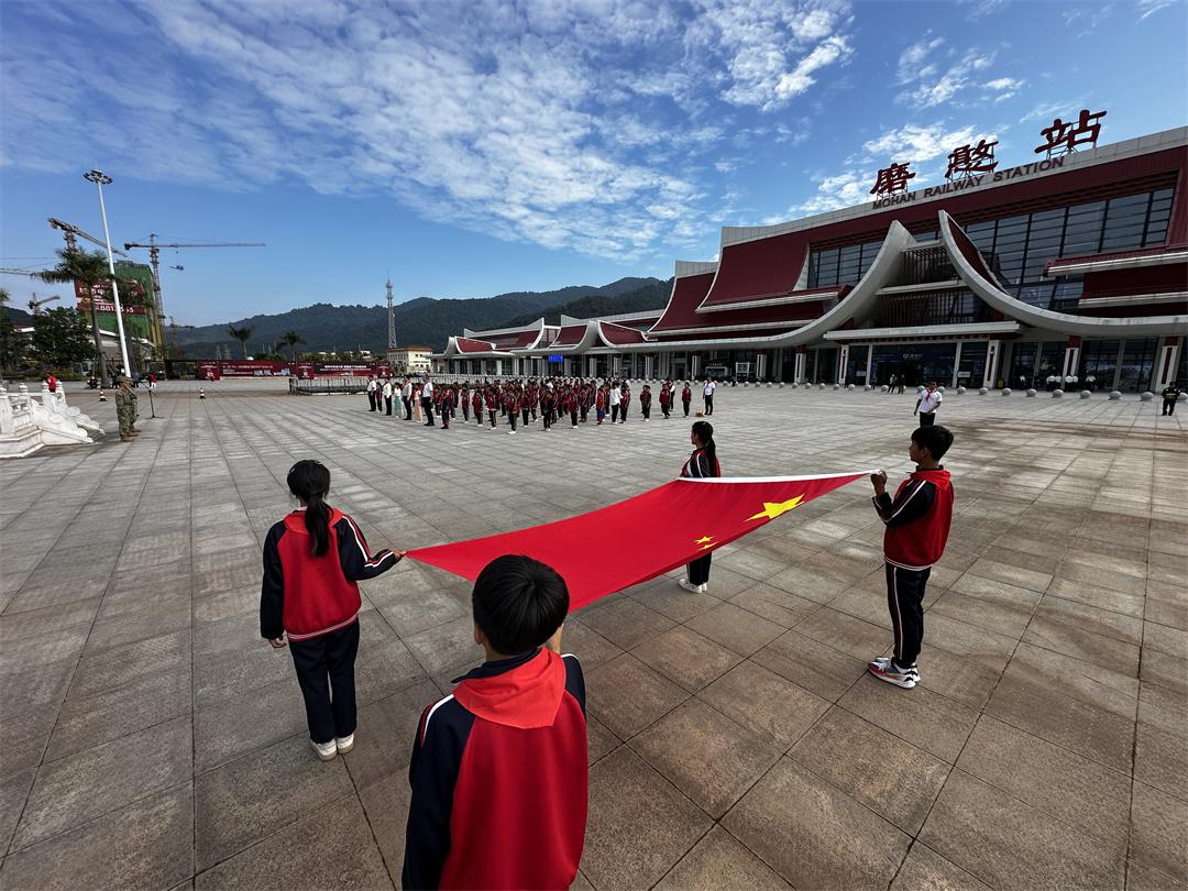 11月12日,“红领巾爱祖国——我心中的五星红旗”国旗传递活动,在中老铁路磨憨站举行。