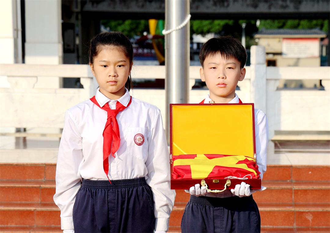 活动当天,随神舟十八号载人飞船进入中国空间站并随神舟十七号载人飞船返回地面的国旗在百色市第一小学进行传递。活动中,广西少先队总辅导员代表将国旗传递到百色市少先队员代表手中。少先队员现场展示国旗后举行了庄严的升国旗仪式。少先队员代表在国旗下表达了对祖国的热爱和对中国航天事业的向往,表示将把这份热爱和期许化作实际行动,传承红色基因,刻苦学习、不断进取,努力成长为堪当民族复兴重任的时代新人。