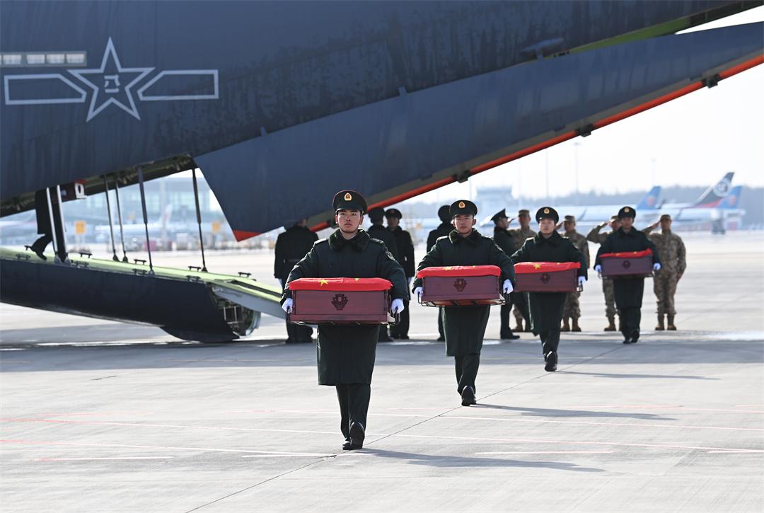 11月28日上午,第十一批在韩中国人民志愿军烈士遗骸回到祖国母亲的怀抱,43位志愿军烈士英灵及495件遗物由我空军专机从韩国接回并护送至辽宁沈阳。