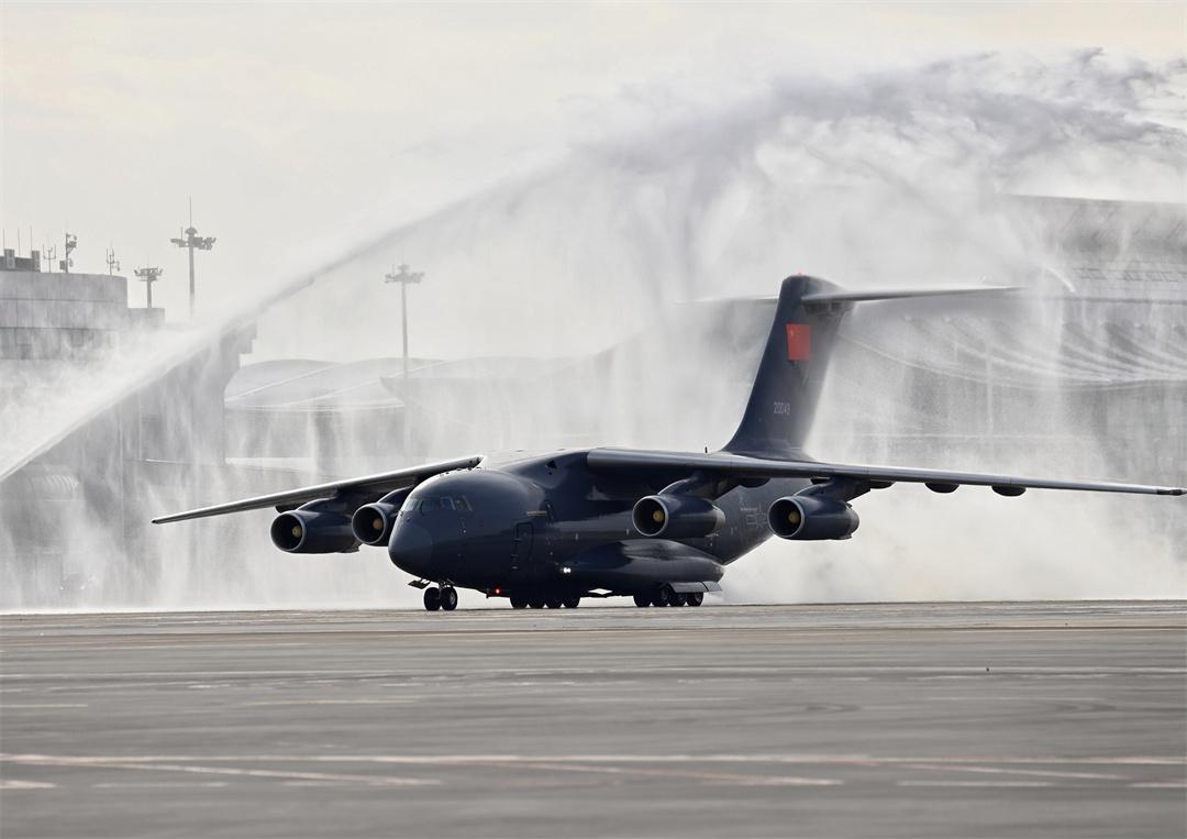 专机进入中国领空后,空军两架歼-20战斗机护航,并在机场上空通场,“双20”同框向志愿军烈士致以崇高敬意。之后,专机缓缓穿过停机坪上架起的水门,机场以“过水门”航空最高礼仪迎接志愿军烈士遗骸回家。