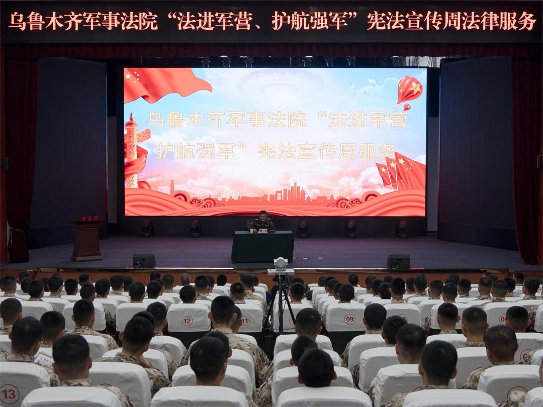 在今年“宪法宣传周”期间,解放军乌鲁木齐军事法院联合新疆维吾尔自治区高级人民法院,赴驻疆部队开展“法进军营、护航强军”法律服务活动,通过举办一堂法治讲座、提供一场法律咨询、收集一遍涉法问题、赠送一套普法产品、展览一次宣传挂图、组织一次座谈交流等形式,解答官兵疑惑、回应官兵关切。
