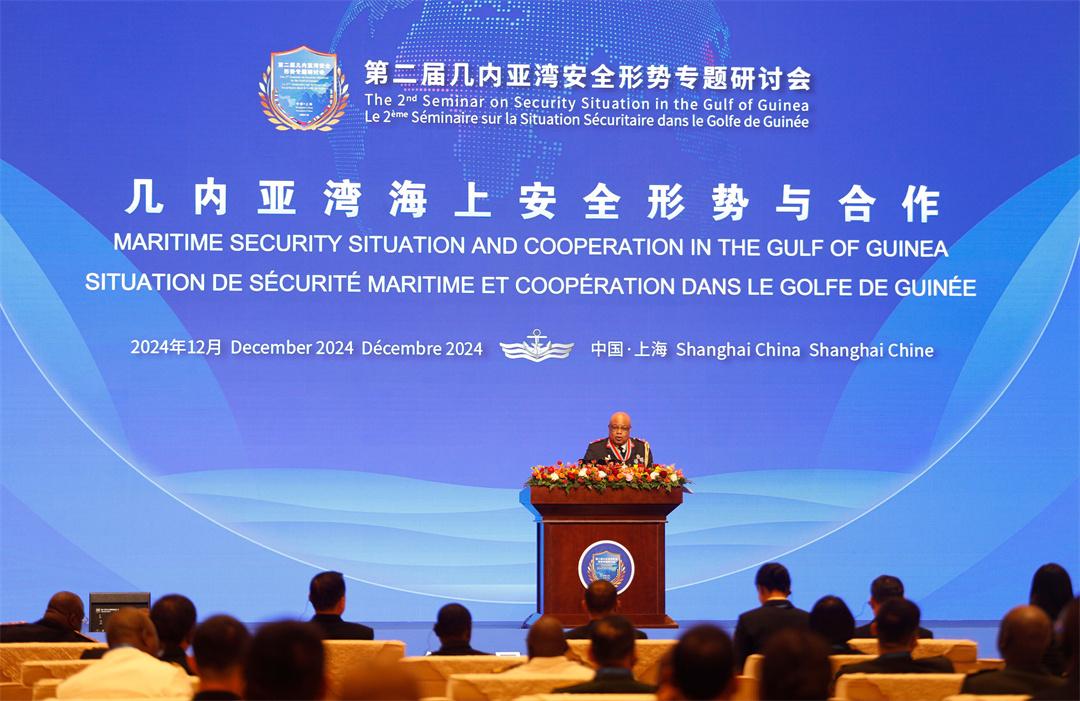 中国海军举办的第二届几内亚湾安全形势专题研讨会12月4日上午在上海开幕,喀麦隆、刚果(布)、加蓬、科特迪瓦、尼日利亚等18个几内亚湾地区国家的海上武装力量领导人及驻华武官代表参会。中国海军司令员胡中明上将出席开幕式并作主旨发言。