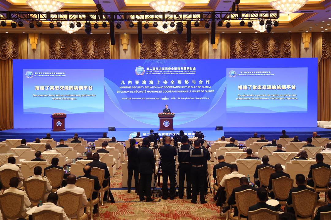 第二届几内亚湾安全形势专题研讨会12月5日在上海闭幕,中国海军司令员胡中明上将致闭幕辞。此次研讨会共有来自几内亚湾18个国家的海上武装力量领导人、驻华武官和中国军队代表70余人出席,举行了3场研讨交流和17场会谈会见。