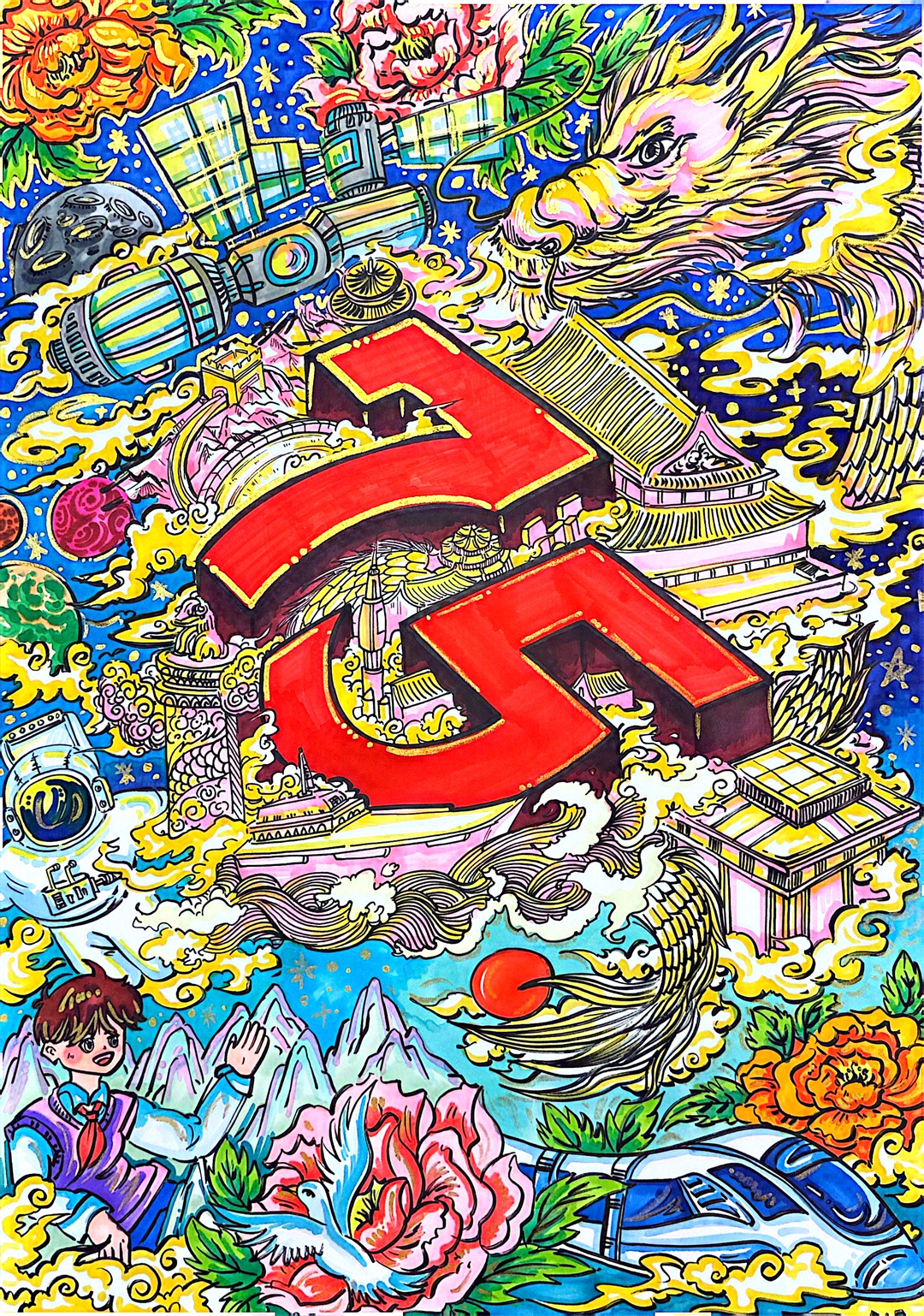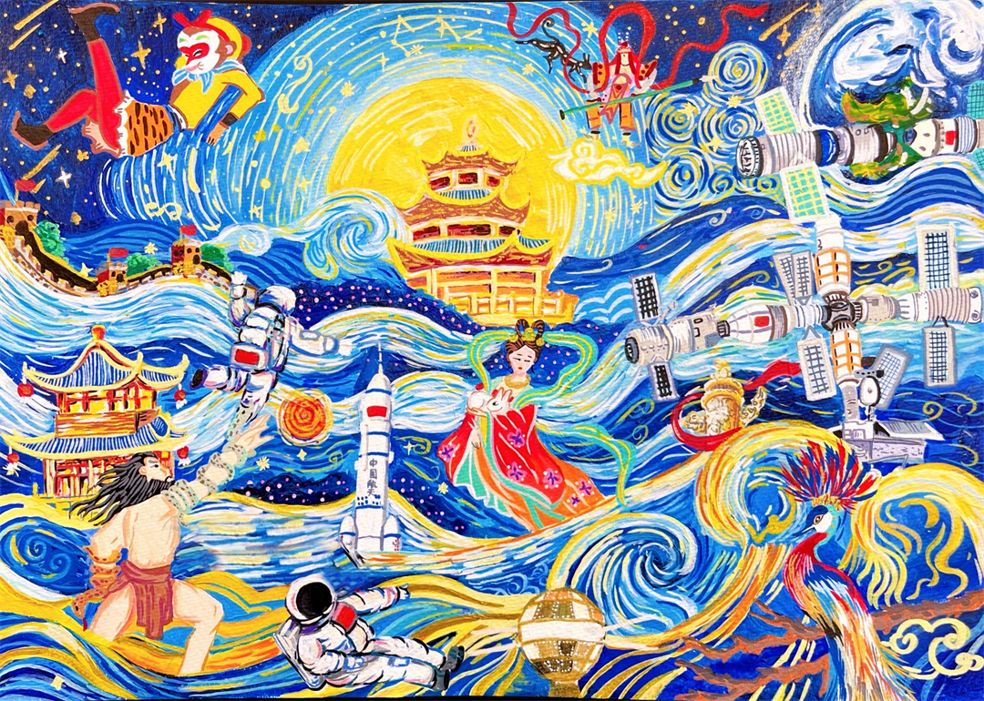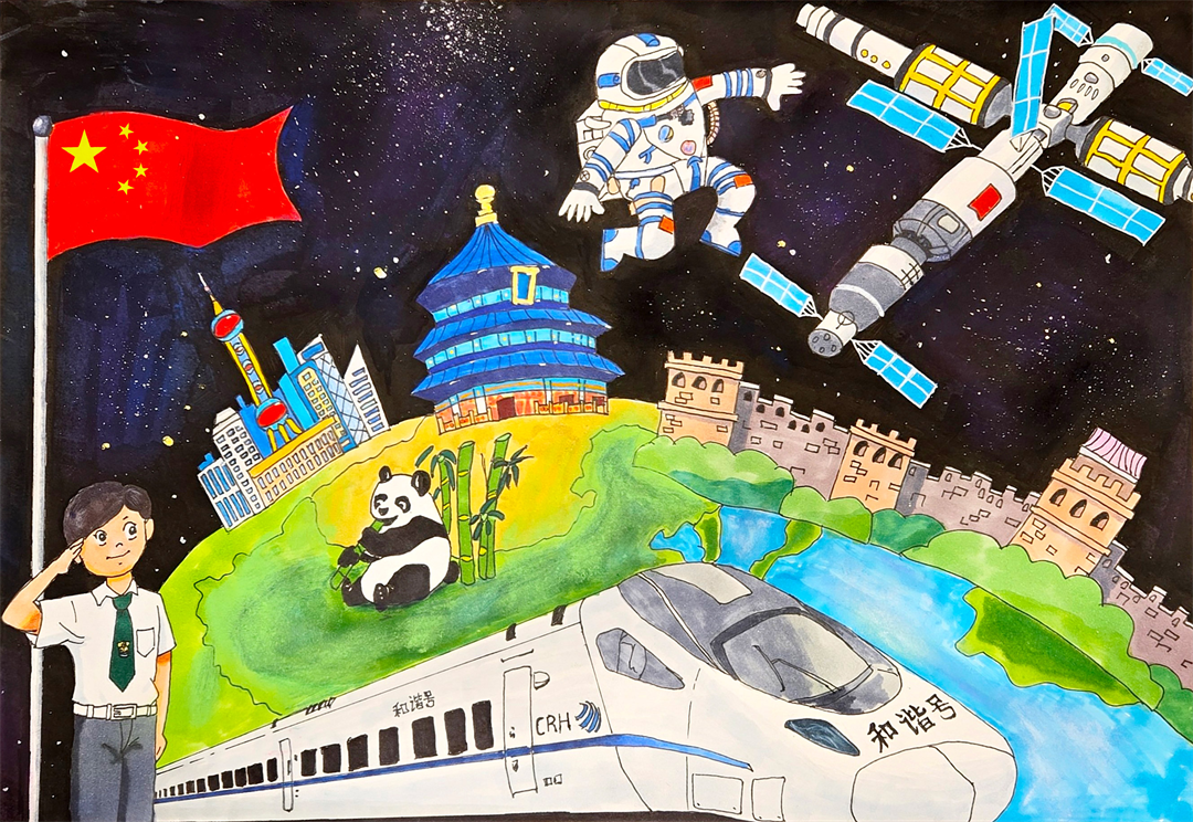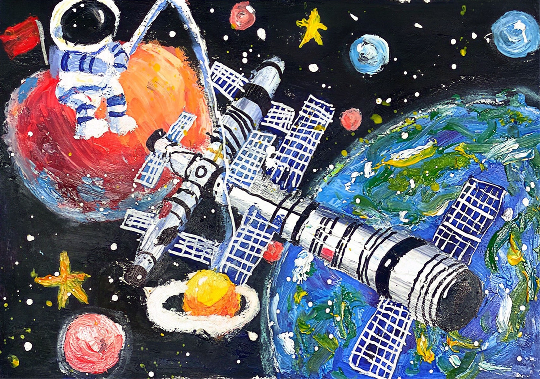 图为北京科技大学附属小学秦国昇画作《逐梦太空》。
