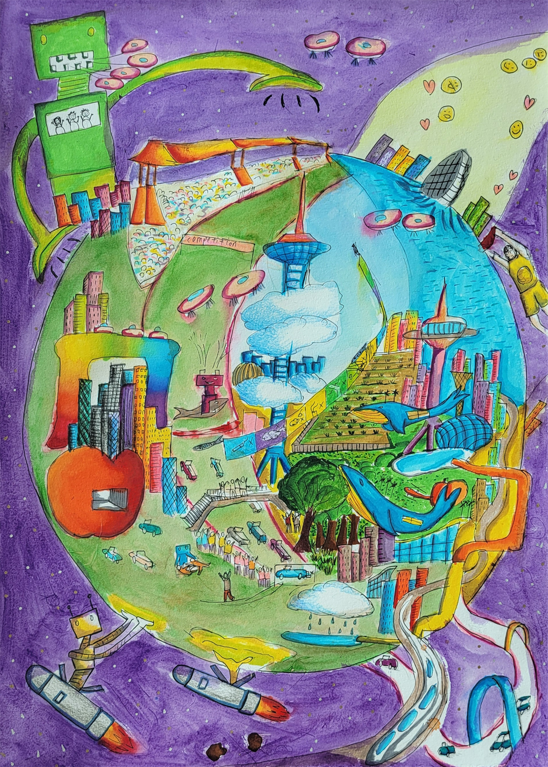图为澳门培正中学赖卓贤画作《未来天宫宇宙规划》。