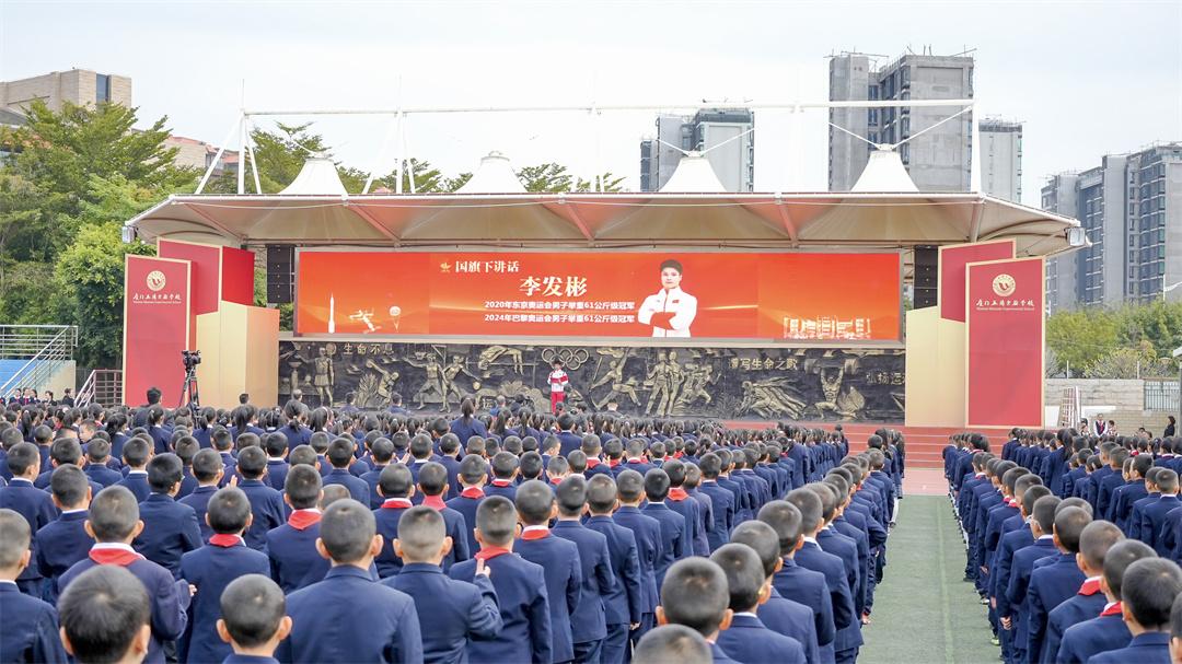 12月16日,“红领巾爱祖国——我心中的五星红旗”国旗传递活动在福建省厦门市举办,共青团省委副书记曾焕强、巴黎奥运会男子举重61公斤级冠军李发彬出席活动,共青团省委少年部、厦门市教育局德育处、共青团厦门市委办公室负责同志以及闽浙两省少先队工作者代表、厦门五缘实验学校师生代表共3000余人参加活动。