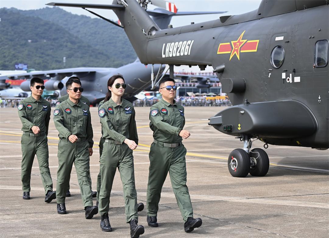 图为第十五届中国航展上,女飞行员徐枫灿(右二)与战友一起走向机位。张永进 摄