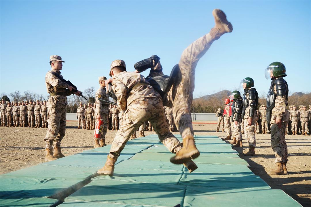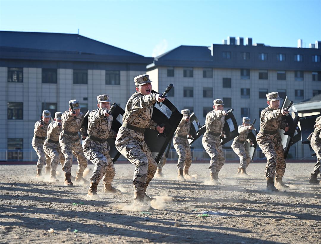 近日,武警北京总队执勤第十四支队打响开训“第一枪”。图为官兵们投入实战化军事训练。