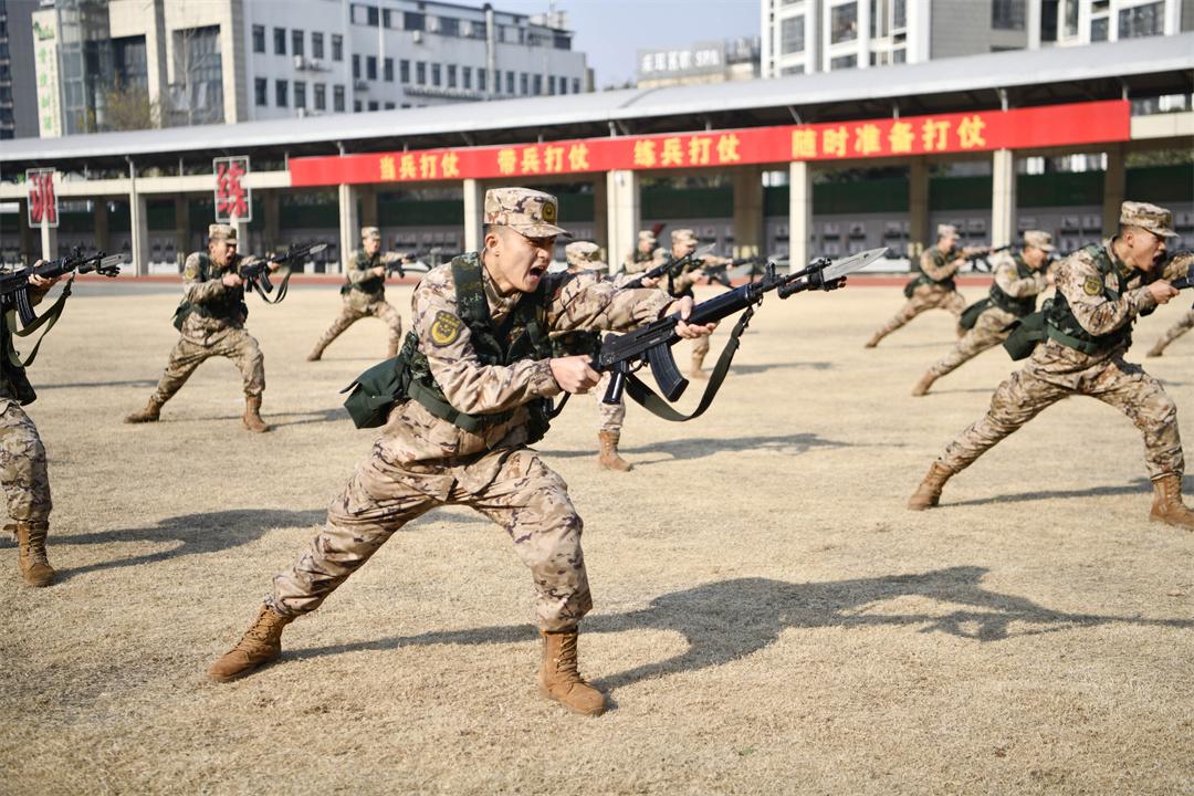 新年开训。图为1月2日,武警安徽总队合肥支队组织官兵进行刺杀训练和通信专业训练。