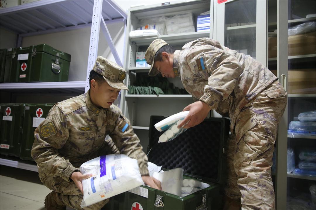 图为西部战区空军某部官兵整理救援物资。徐林 摄