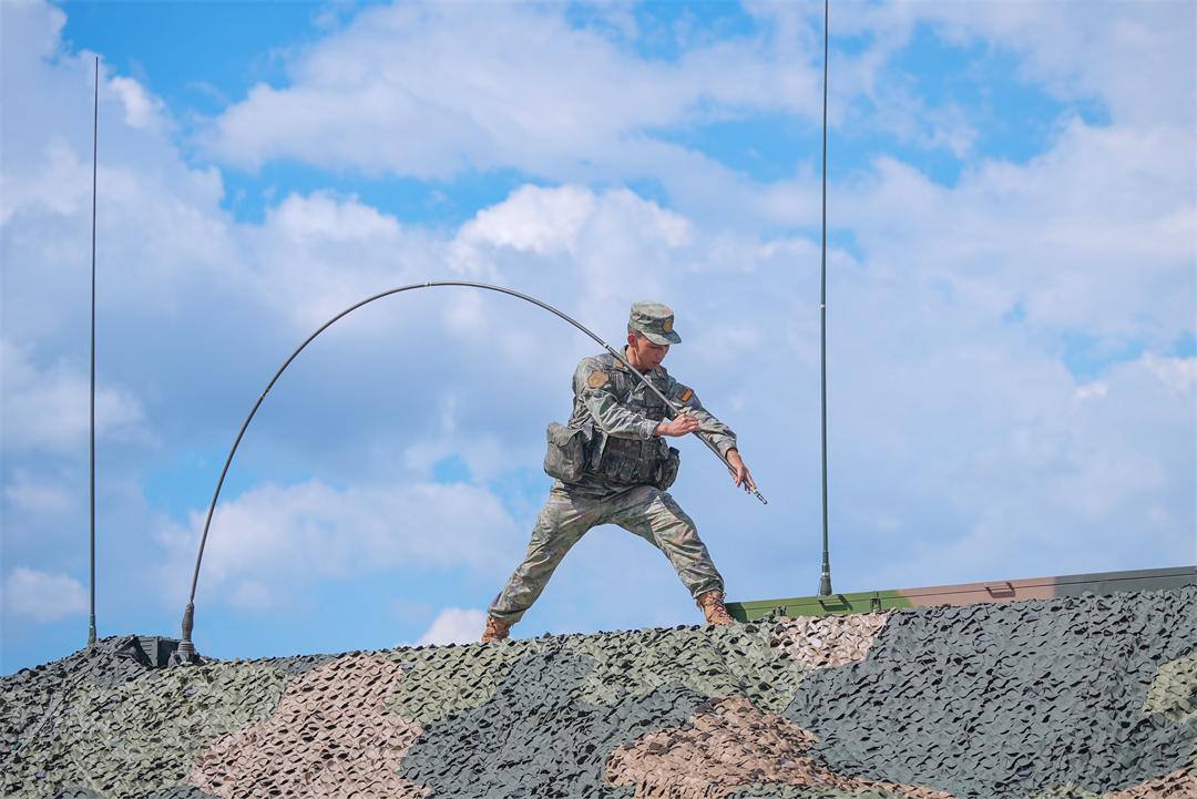 图为官兵架设通信天线,快速接通通信链路。代龙富 摄