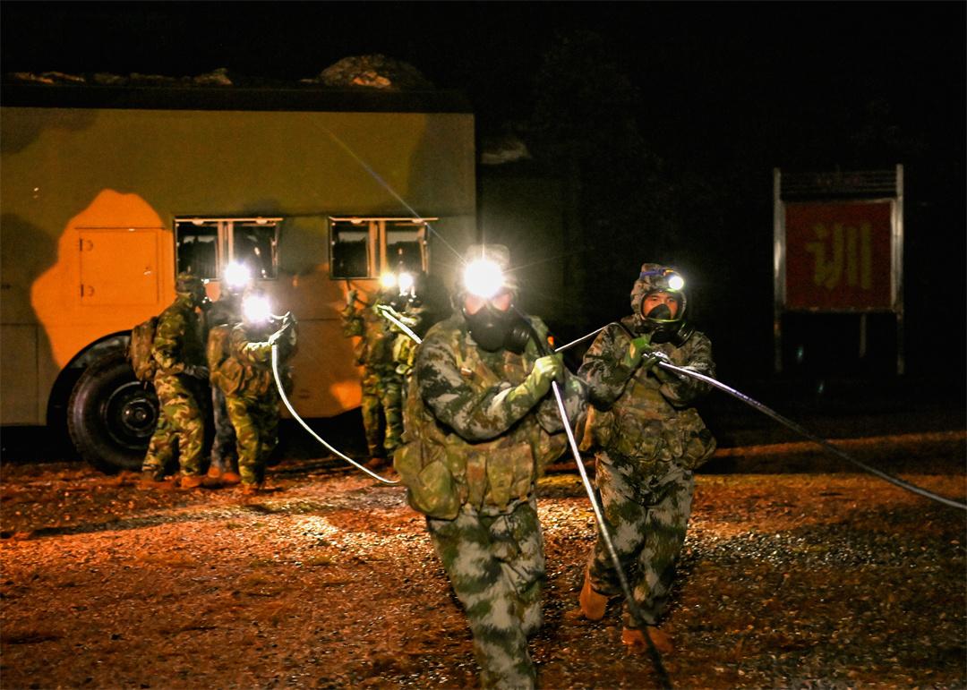 图为火箭军某旅高级军士展开全防护下训练演练。刘明松 摄