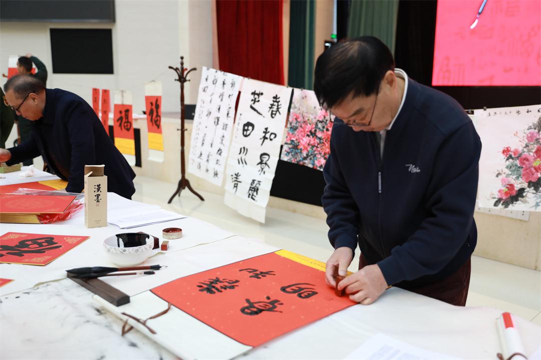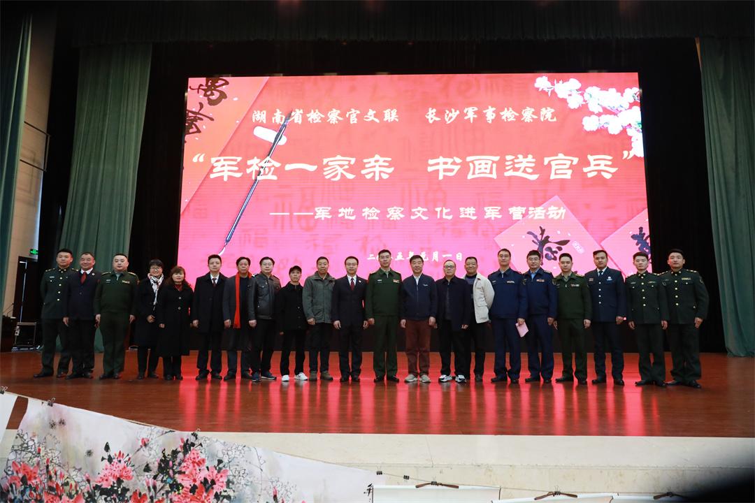 为弘扬传统文化,营造欢乐祥和的节日氛围,近日,解放军长沙军事检察院联合湖南省人民检察院政治部、湖南省检察官文联开展“军检一家亲、书画送官兵”检察文化进军营活动,特邀湖南省检察官文联10余名书画家与部队官兵和军属代表齐聚一堂,用笔墨承载祝福,在传统文化熏陶中涵养法治精神。