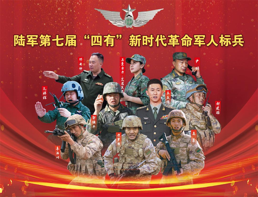 图为陆军第七届“四有”新时代革命军人标兵海报。