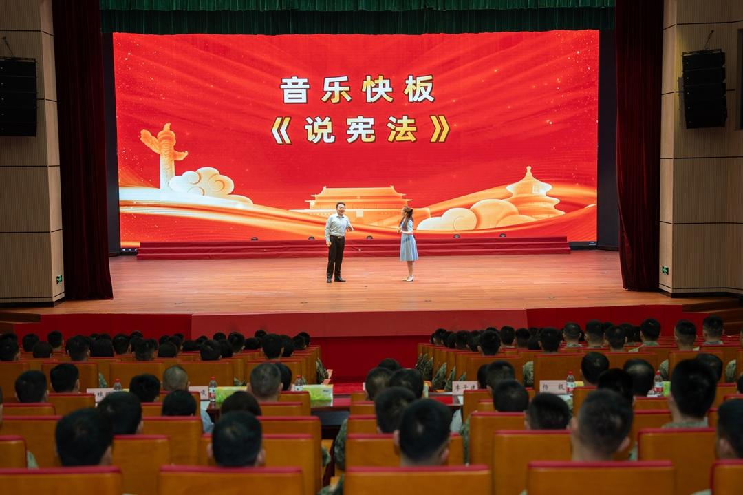 “我是一个老兵,只要能举起右手,我都会向祖国敬礼……”原创小品《敬礼》讲述了一位80多岁的老兵在麒麟山疗养院的故事。小品情节感人肺腑,既有笑点又有泪点,深受官兵欢迎。在深圳某部军营,一场由法官、文艺工作者等联袂演出的专题展演,让法治宣传不仅走“新”,而且走“心”。《尚法歌》《说宪法》等节目充满法治元素、兵的情怀。一名陆军中士看完演出,意犹未尽地说:“以文艺形式把法治关键点呈现出来,既教育了人,又滋养了心。”