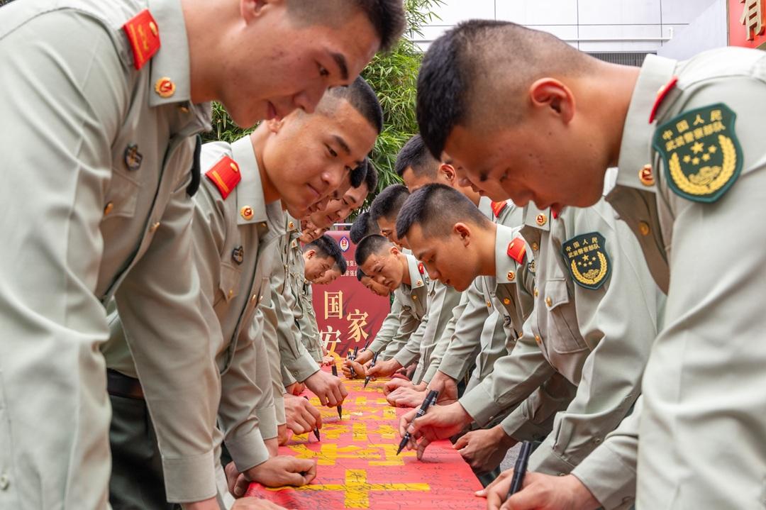 图为武警官兵开展全民国家安全教育日主题签名活动。