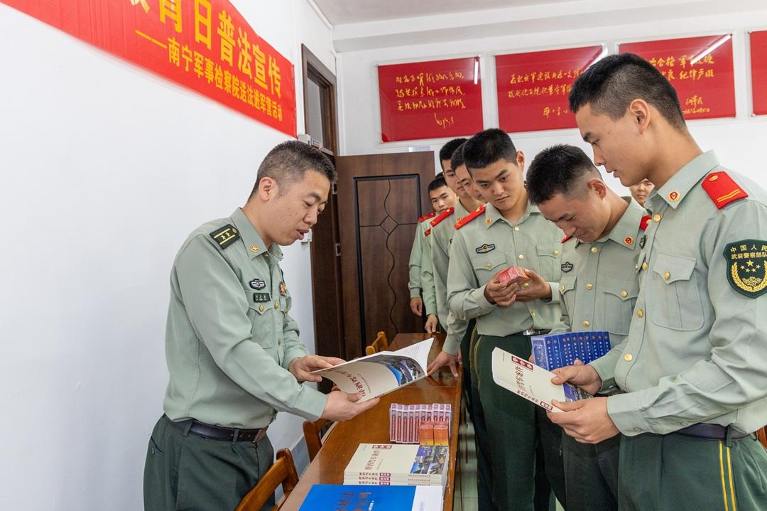 近日,武警广西总队南宁支队通过邀请驻地检察院检察官入营宣讲、开展案例分析等方式,筑牢官兵国家安全意识。