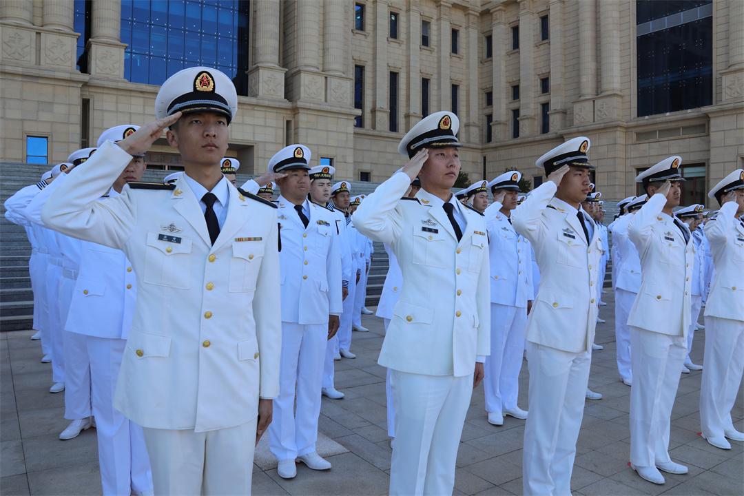 上午8时20分许,伴着6名礼号手奏响的《致敬号角》,仪式正式开始。全场官兵齐唱国歌,雄浑激昂的旋律在碧海蓝天间回荡。随后,参加仪式的海军领导迈步上前,仔细整理花篮缎带。6名海军院校学员列队在主题雕塑两侧,满怀着对人民海军英雄的无比深情致以献词,“从木桨奋楫到铁流争锋,从近海防御到深蓝纵横,在强军思想的引领下,在领袖擘画的蓝图中,逐梦大洋壮国威,踏破波涛唱大风…”朗朗吟诵中,展现出新时代海军官兵的精神风貌和价值追求。