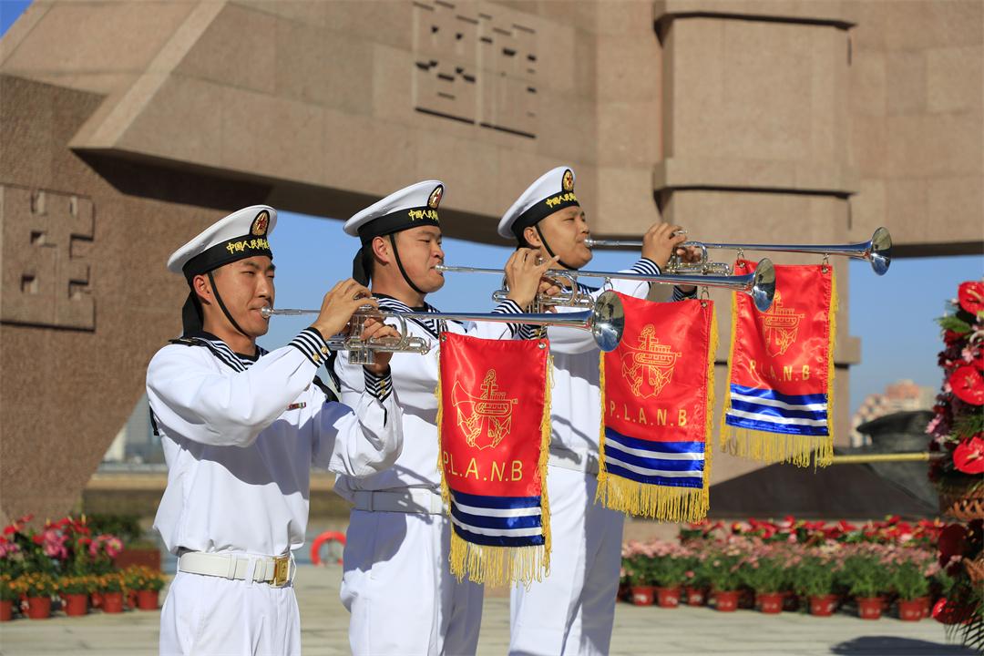 图为海军举行致敬人民海军英雄仪式。尹柳玉 摄