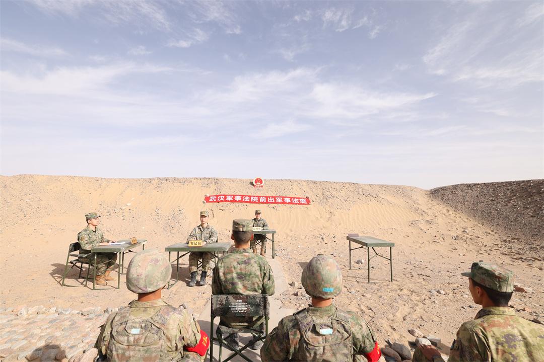 图为武汉军事法院在95944部队开展模拟军事法庭审判。