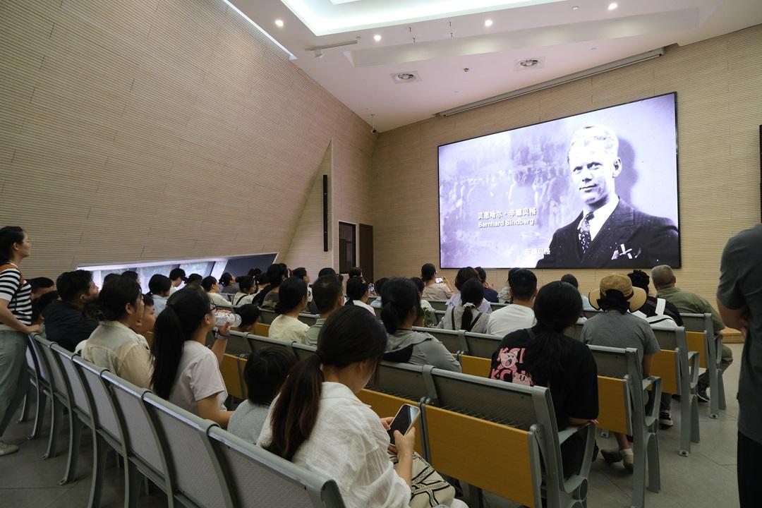 图为公众在馆内观看相关教育片。韩潇 摄