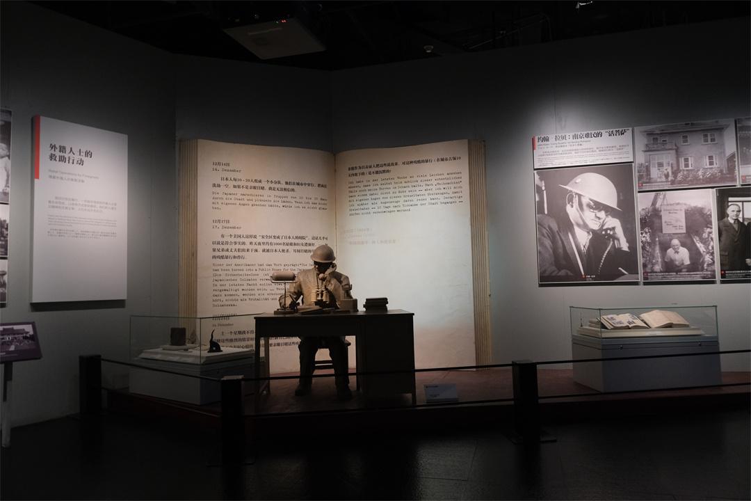 展厅里展出的《拉贝日记》写到:“12月14日,日本人每10至20人组成一个小分队,他们在城市中穿行,把商店洗劫一空。如果不是亲眼目睹,我是无法相信的。”除此之外,展厅里还展出了众多留在南京的外籍人士的人道主义救援行动和对日军暴行的记录,其中许多人如贝德士、罗伯特·威尔逊、约翰·马吉等后来都成为战后审判南京大屠杀案的重要证人。