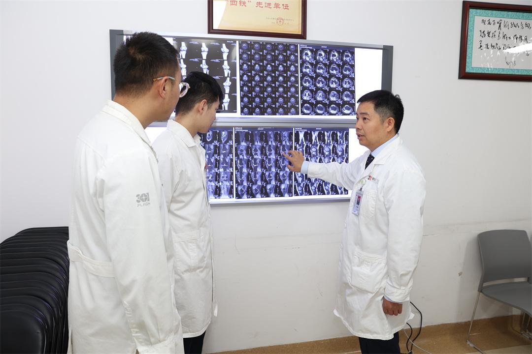 图为李海鹏副主任医师团队查看患者片子,讨论病情,研究治疗方案。范萍 摄