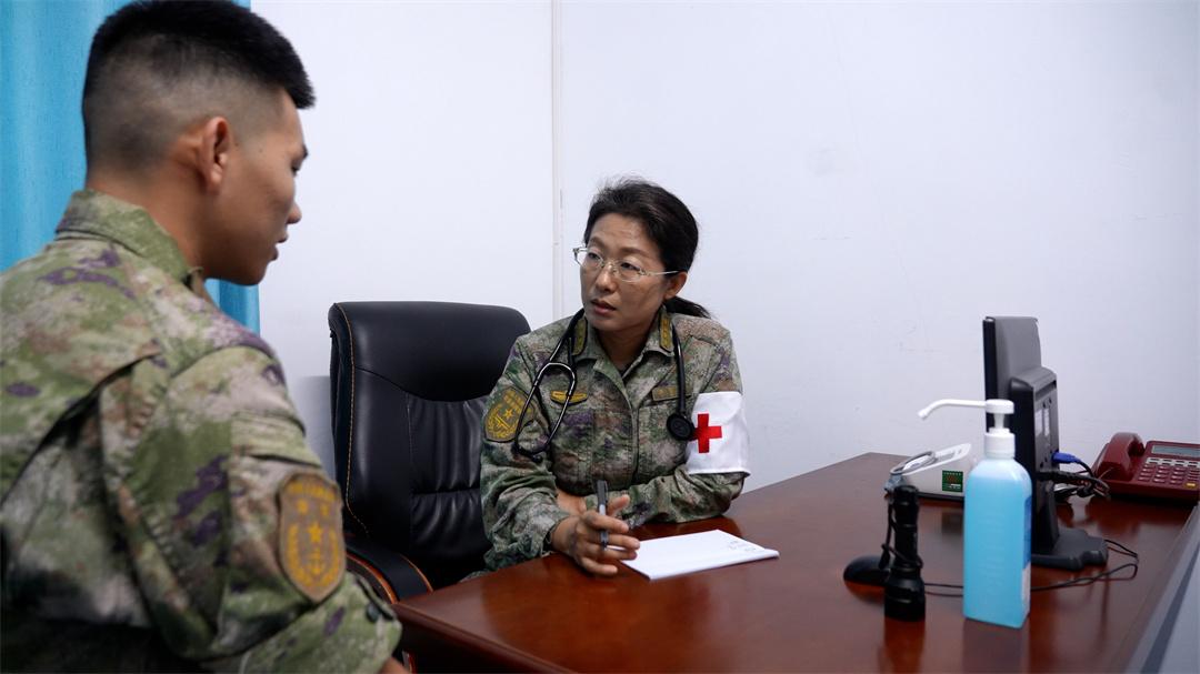 图为李慧灵(右)为官兵看诊。匡野 摄