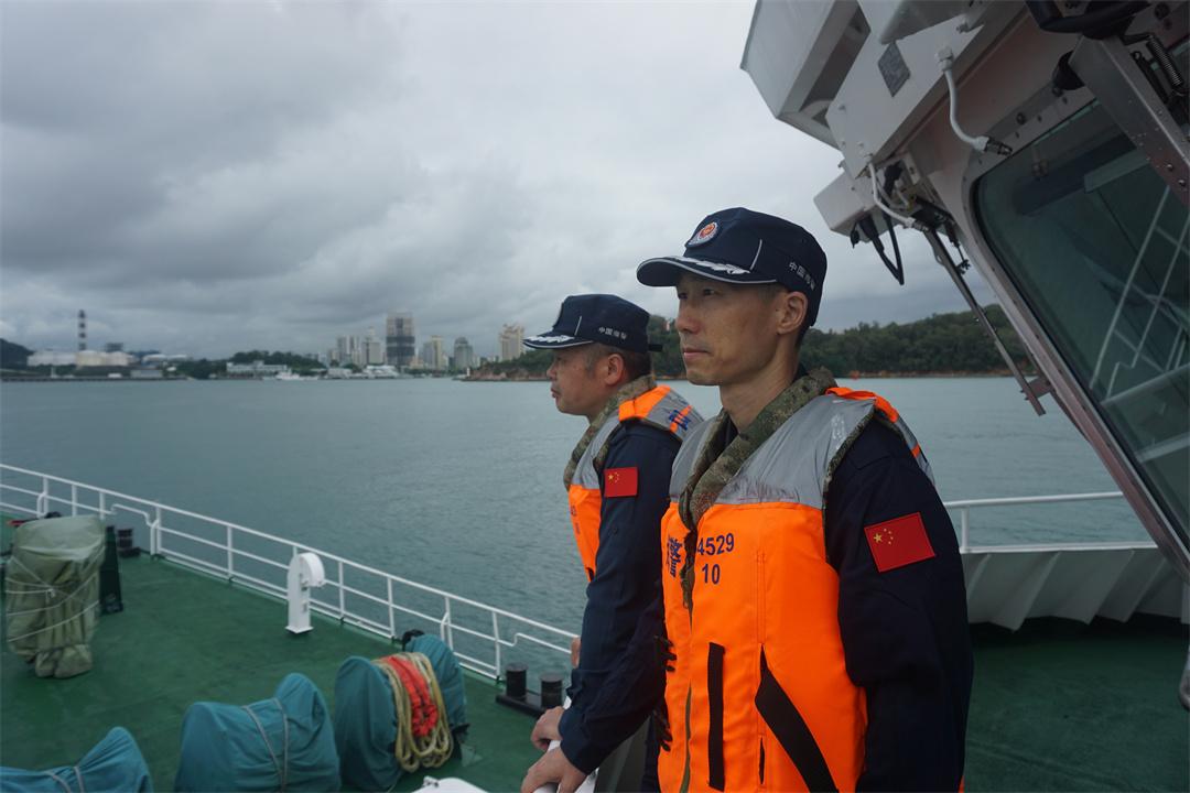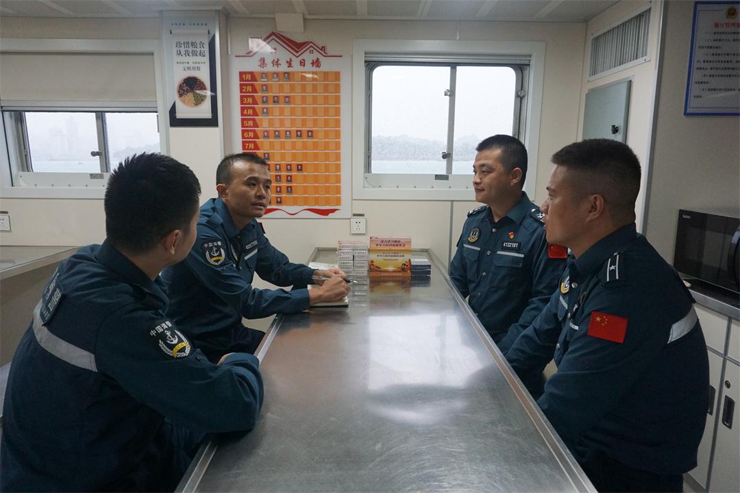 图为随舰出海调研了解海警实施海上管控和巡查执法情况。