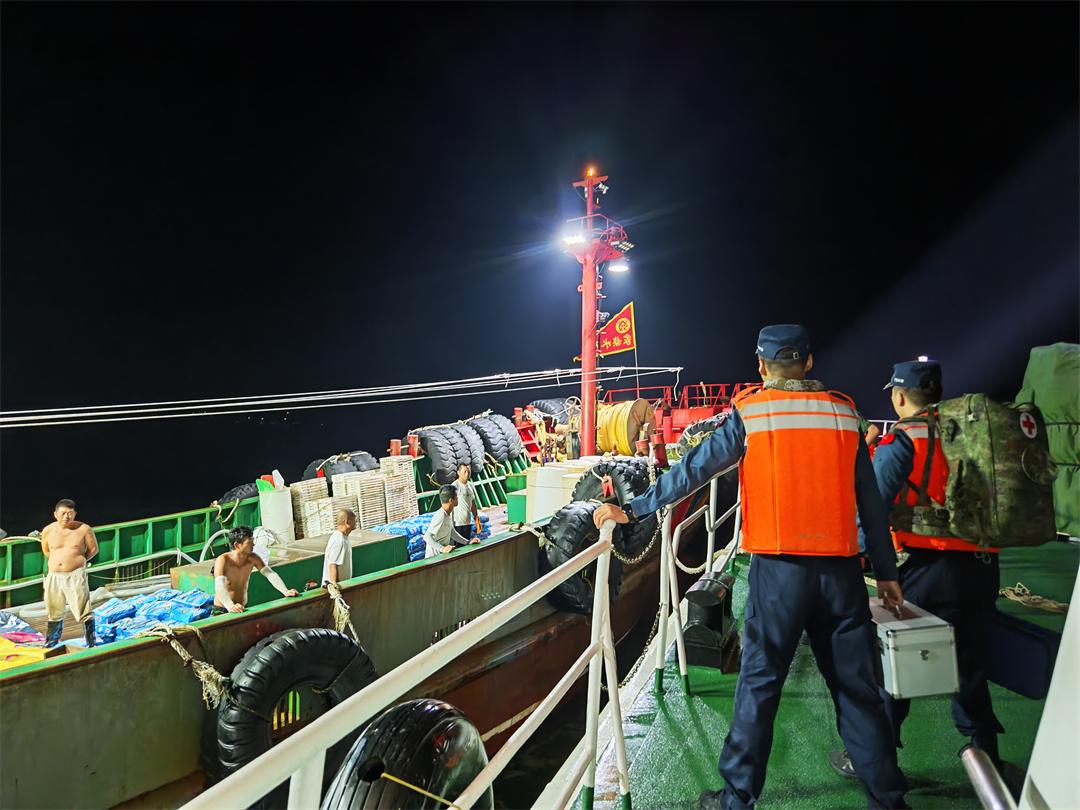 由于夜间航行,海上能见度较差,且事发海域周边渔网较多,给航行带来较大困难,永隆舰执法员们凭借出色的驾驶技能和丰富夜航经验,克服诸多不利因素,稳慎驾驶舰艇赶往事发海域。航行中,执法员们通过多种通信方式与求助渔船保持联系,动态掌握船舶位置及伤员情况,随舰医护人员远程指导渔船其他人员为伤者开展先期辅助治疗。