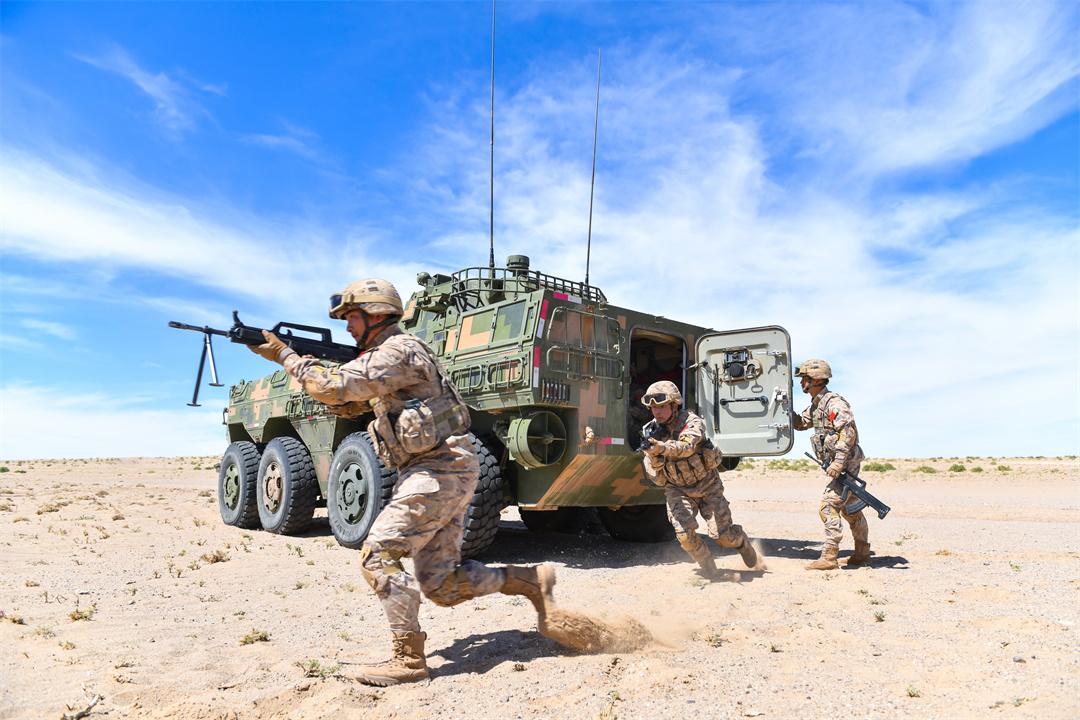 图为“平型关大战突击连”在中蒙演习中下车战斗。朱甫鑫 摄