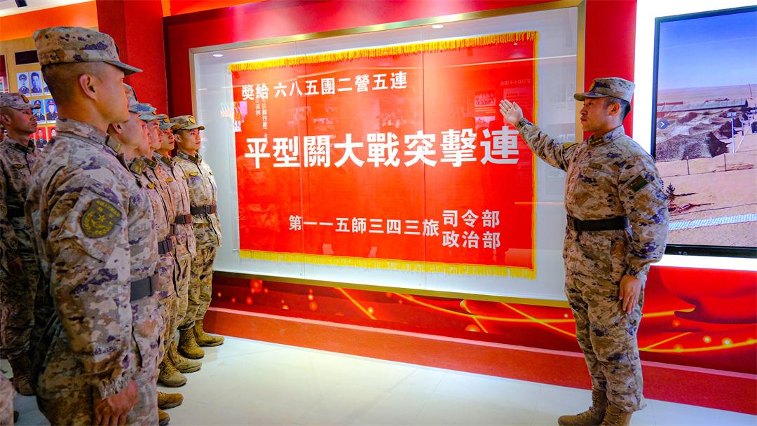 “在敌我武器装备悬殊的情况下,如何打赢这场仗?依靠的就是八路军战士不畏强敌,敢于牺牲、敢于亮剑,保家卫国的决心。”连队第47任政治指导员栗新朝介绍,每次大项任务前,连队都会组织官兵重温这段战斗历程,用血性胆气砥砺突击之勇,引导官兵始终向着胜利突击。