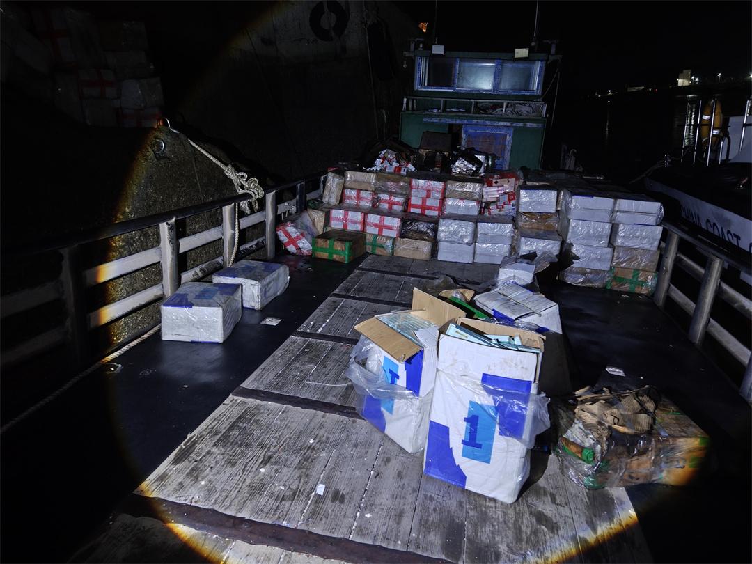 8月11日,福建宁德海警局霞浦第二工作站查获一起涉嫌走私香烟案,现场查扣涉案船舶1艘、厢式货车2辆,抓获犯罪嫌疑人5名,查获南京、云烟、利群、玉溪等品牌走私香烟共计568件,初步估算案值达517万元。