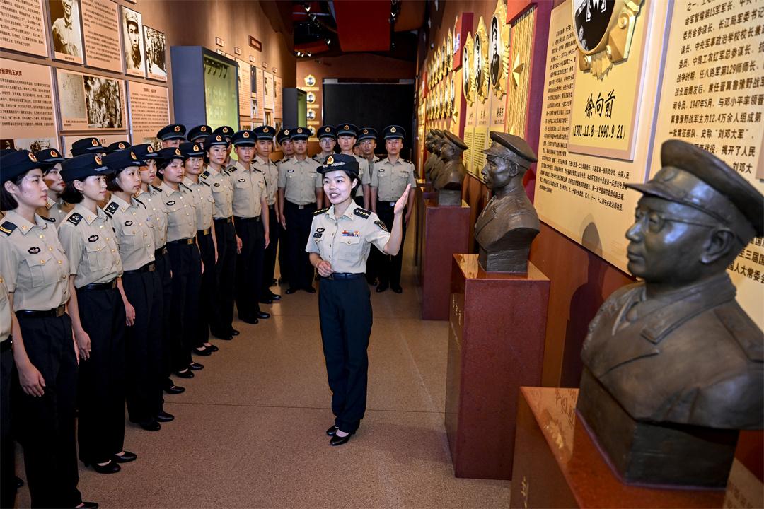 图为陈东森(右)带领官兵来到驻地理想信念教育基地,开展现地教育实践活动。