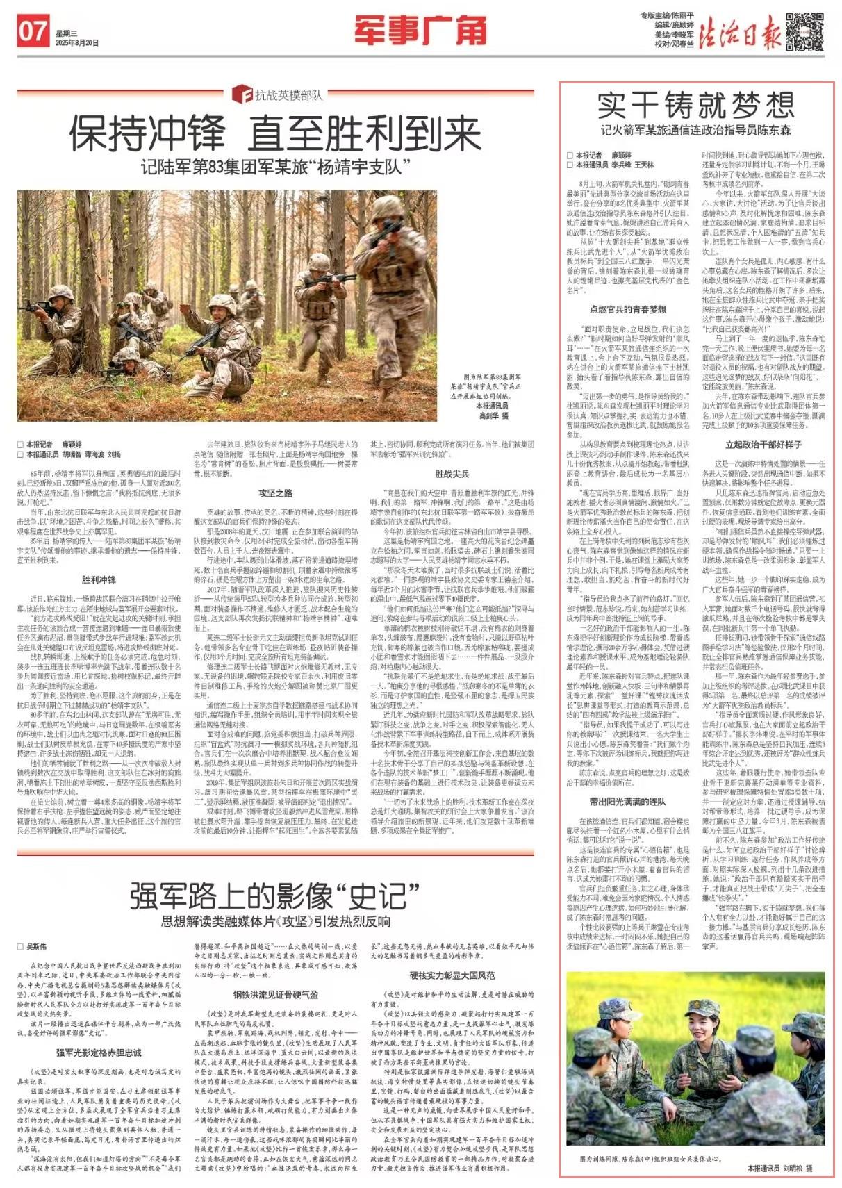 “迈出第一步的勇气,是指导员给我的。”杜凯丽说。陈东森发现杜凯丽平时理论学习很认真,知识点掌握扎实,表达能力也不错,营里组织政治教员选拔比武,就鼓励她报名参加。