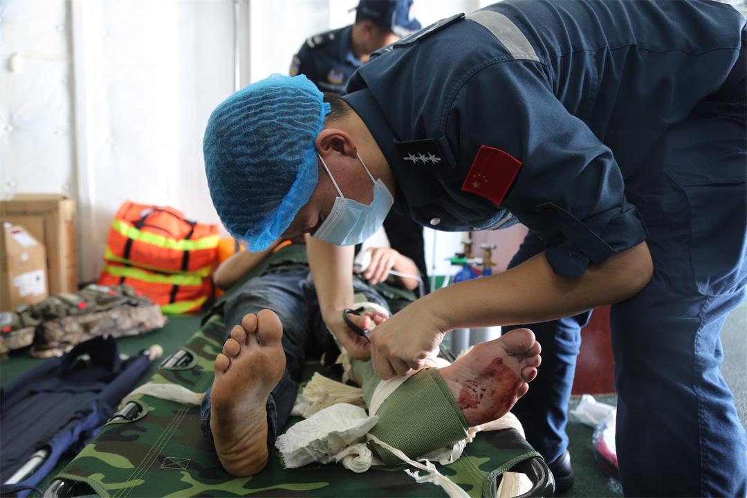 8时06分,海警玉环舰到达目标渔船所在海域,立即组织救护人员对伤员展开止血包扎、骨折固定等应急救治,并转运至舰上对其进行全面检查和治疗,同时高速前往预定海域。16时25分,在海上与空中、地面多方协同下,航空应急救援直升机与海警玉环舰顺利交接伤员,医护人员同步实施急救措施。17时25分,直升机落地舟山医院,伤员经“绿色通道”被送入抢救室手术。
