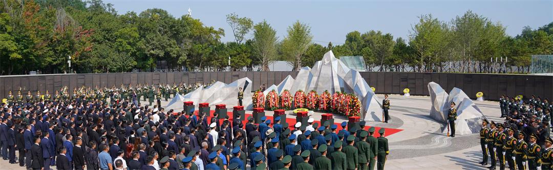 9月13日10时,安葬仪式开始。陵园下沉式纪念广场环形烈士英名墙下,摆满黄白相间的菊花,参加仪式的人们肃穆站立。军乐队奏响婉转低回的《思念曲》,在解放军仪仗司礼大队官兵持枪护卫下,礼兵们迈着整齐的步伐,护送志愿军烈士遗骸棺椁缓步进入纪念广场,全场奏唱中华人民共和国国歌。